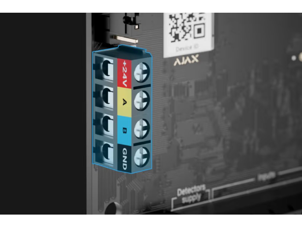 - Konektor pro **tamper desku pouzdra Ajax** detekuje pokusy o otevření pouzdra.