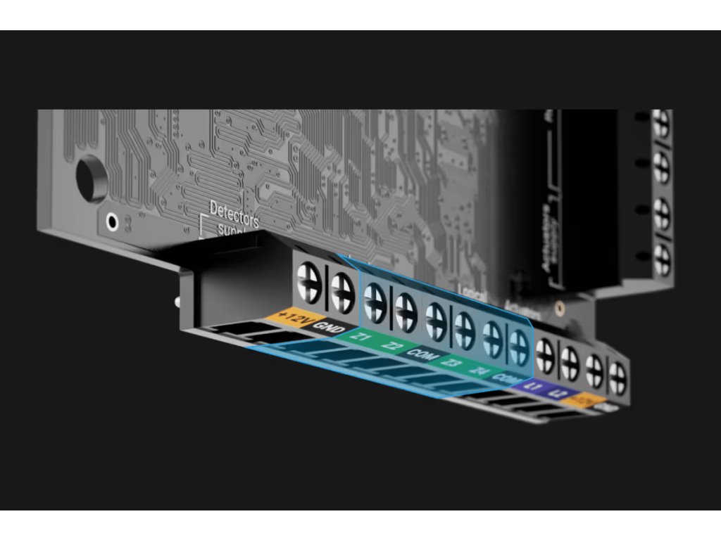 Díky čtyřem vstupům a čtyřem výstupům je tento integrační modul perfektním řešením pro malé a střední instalace. Integrace s dveřními zámky, sirénami a stroboskopy umožňuje uspořádat špičkovou ochranu proti vniknutí.