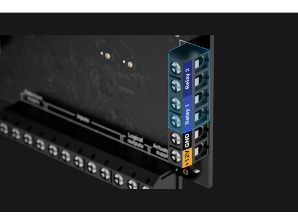- **Dva reléové výstupy** s bezpotenciálovými (suchými) kontakty pro ovládání sirén, stroboskopů a dalších elektrických zařízení.