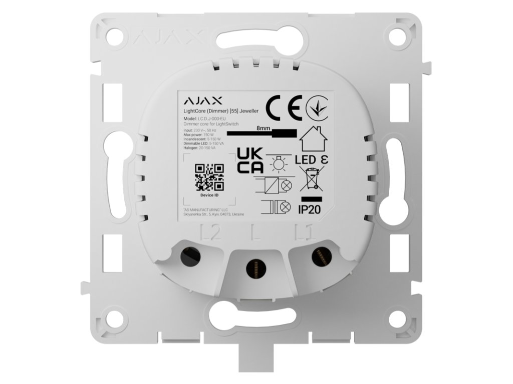 AJAX LightCore Dimmer Jeweller - relé stmívače pro horizontální instalace
