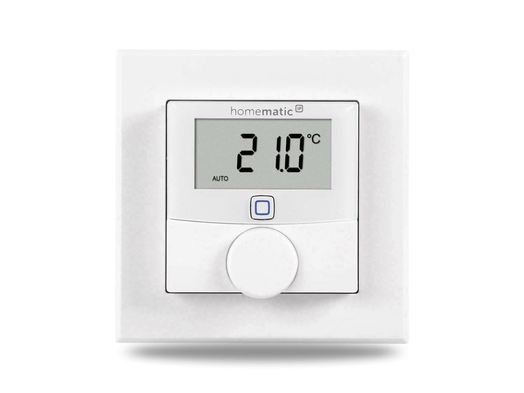 Jedním z takových zařízení je i bezdrátový Nástěnný termostat se senzorem vlhkosti a spínaným výstupem 230 V (HmIP-BWTH) z řady Homematic IP pro zápustnou montáž s podsvíceným LED displejem o velikosti 1,74" pro zobrazení aktuální teploty a vlhkosti, představující inteligentní způsob regulace vytápění a úspory energií.