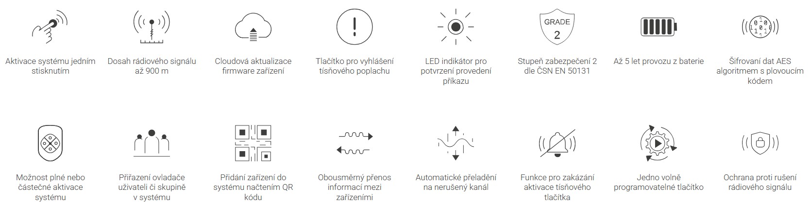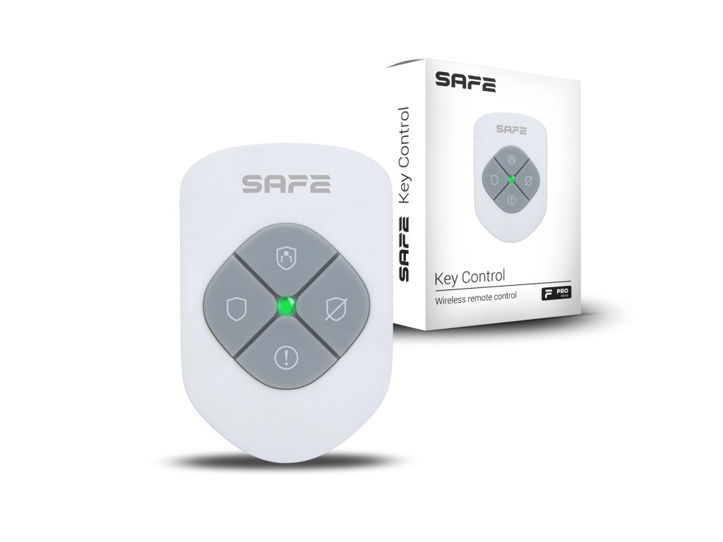 Bezdrátový dálkový ovladač, který je vybaven třemi tlačítky pro jednoduché ovládání klíčových funkcí zabezpečovacího systému SAFE – částečné aktivace, plné aktivace nebo deaktivace. Navíc obsahuje jedno volně programovatelné tlačítko.