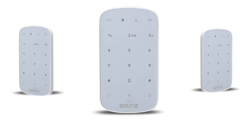 Bezdrátová dotyková, podsvětlená klávesnice pro jednoduché ovládání zabezpečovacího systému SAFE pomocí dotykových kláves nebo bezkontaktních čipů. Umožňuje spustit tísňový poplach, požární poplach nebo alarm pro přivolání lékařské pomoci. Je vybavena ochranou proti hádání hesla.