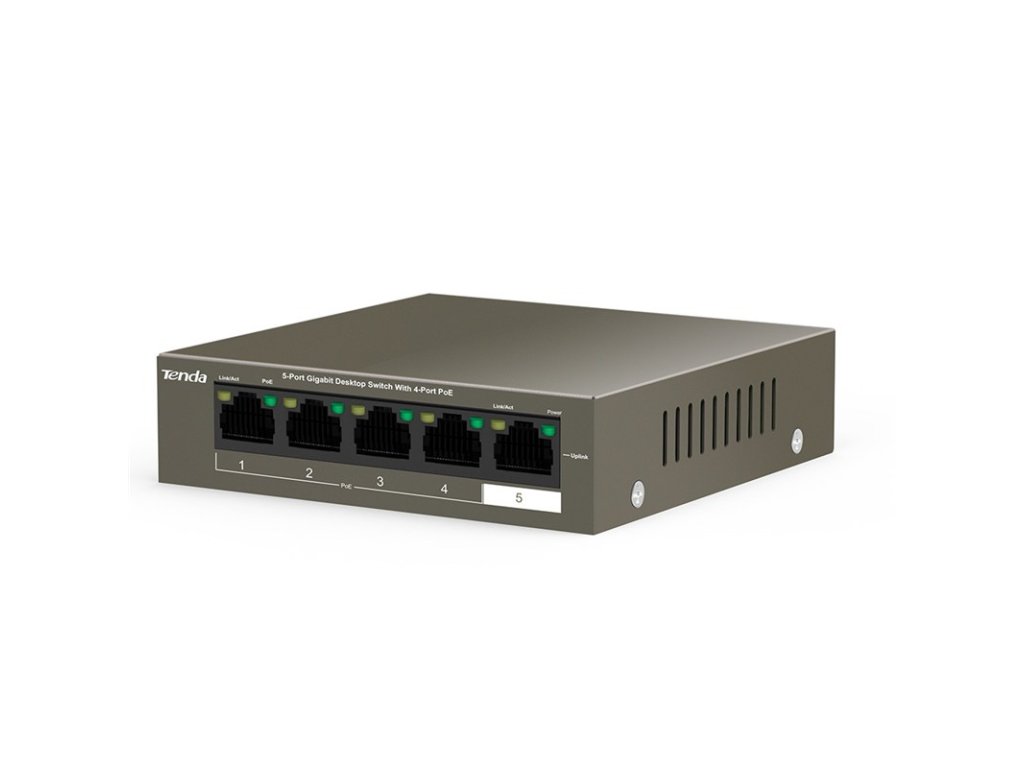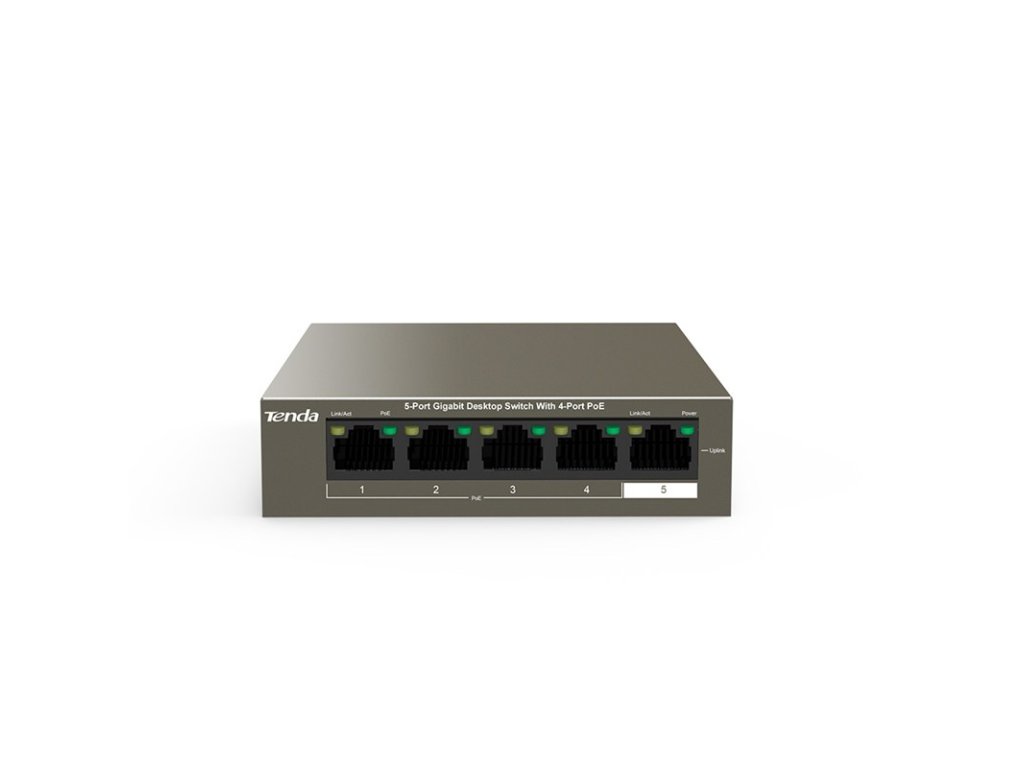 Tenda TEG1005P-4-63W přepíná data pomocí 5ti portů RJ45 s přenosovou rychlostí 10/100/1000 Mb/s s automatickou detekcí rychlosti. Jeden port slouží pro Uplink a 4 PoE porty podporují PoE 802.3af a 802.3at. Switch podporuje stabilní 8 jádrové PoE napájení, ochrana proti přepětí 6kV. Podpora přepojování uzlů v módu Store-and-Forward. Full-duplex kontrola toku 802.3x, half-duplex kontrola toku v režimu Back-Pressure.